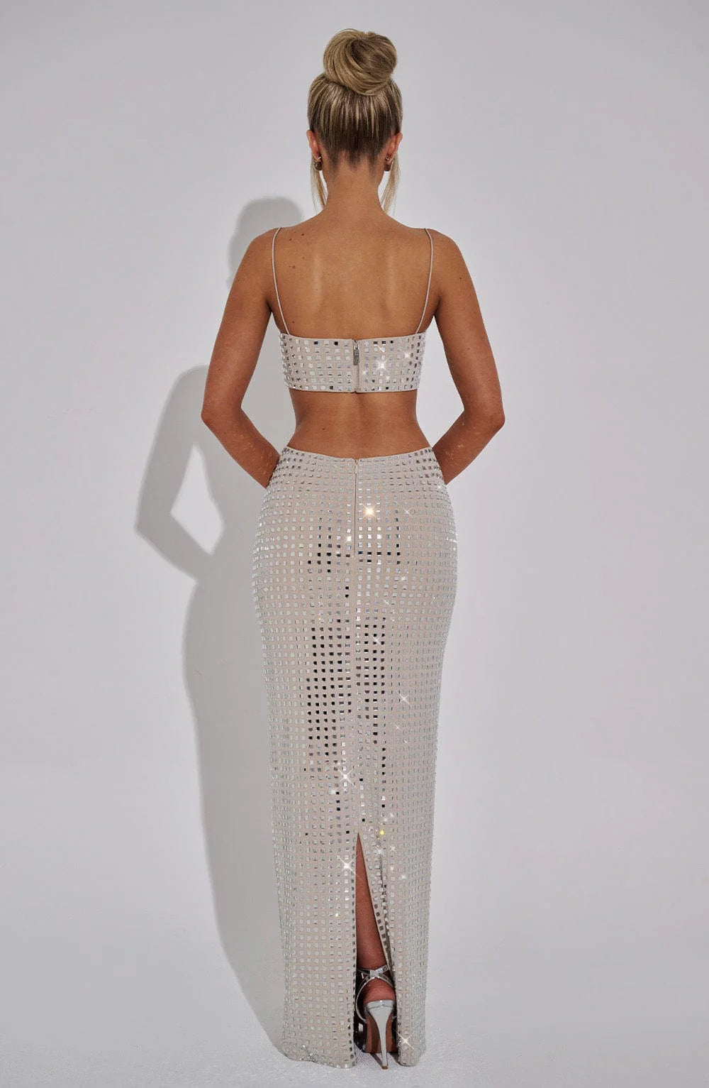 Command the room in this floor-length, backless gown with a clean, slim silhouette and gentle stretch for comfort. A subtle train adds drama, while the sleeveless cut frees movement on the dance floor. Pair with heels, a clutch, and statement jewelry for timeless elegance.