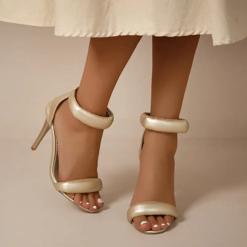 A sleek pointed toe and single strap create a clean, leg-lengthening line. Premium PU upper, feather-light 0.49 kg build and secure buckle closure add comfort. Offered in gold or black with inclusive sizing (EU 36–42) for a polished finish to day or night looks.
