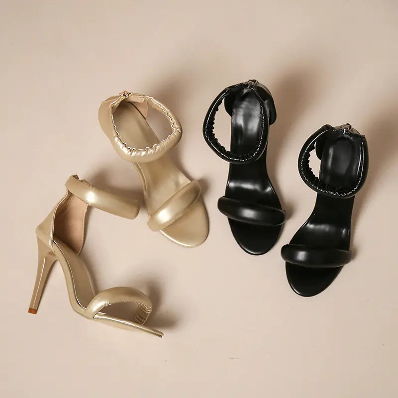 Black/Gold Pointed-Toe One-Strap Stiletto Sandals