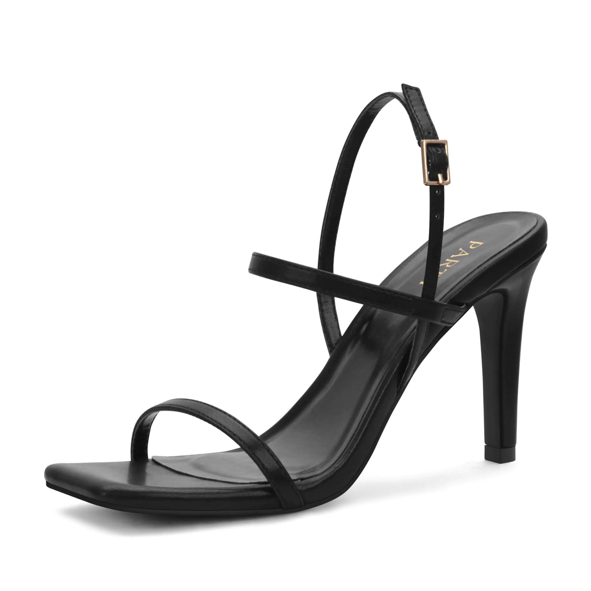 Elegant yet walkable, these black faux leather heels feature a square open toe, 3.54” stiletto heel, and soft lining. Designed for comfort and stability, they’re perfect for any special occasion, from weddings to date nights.