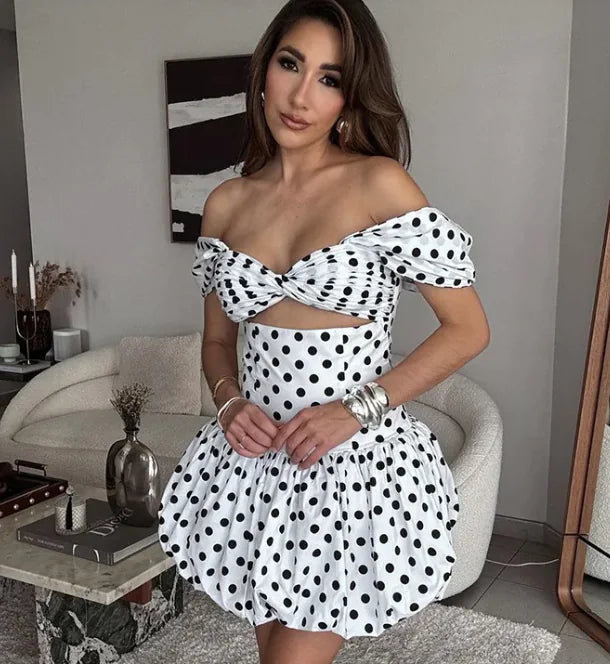 Turn heads in this chic Tube Top Hollow Dress. Made with soft breathable polyester, it features stylish hollow-out detailing, raglan short sleeves, and a flattering high waist. The black-and-white contrast adds timeless appeal, while the short skirt cut brings modern confidence. Ideal for nights out, chic events, or stylish gatherings.