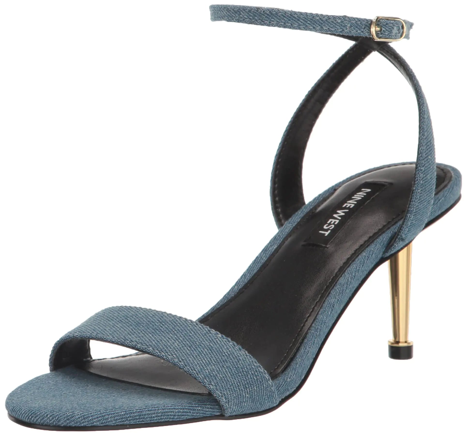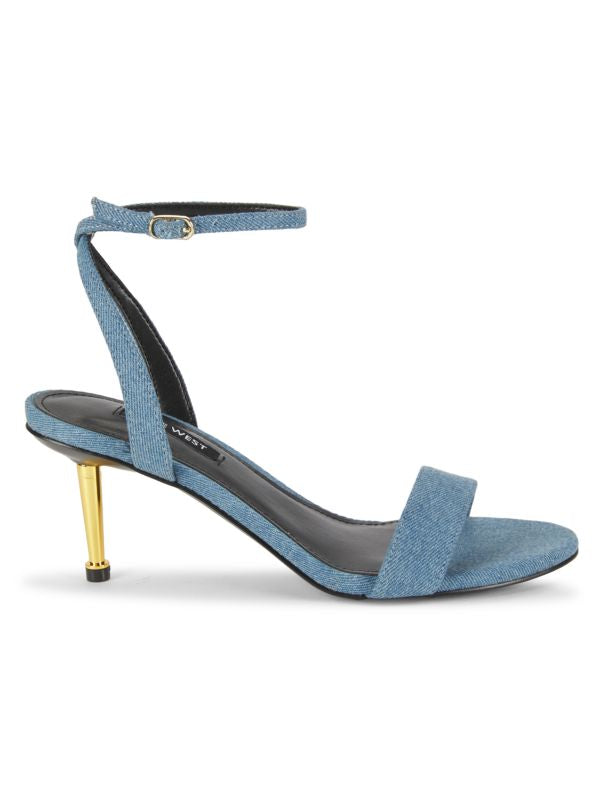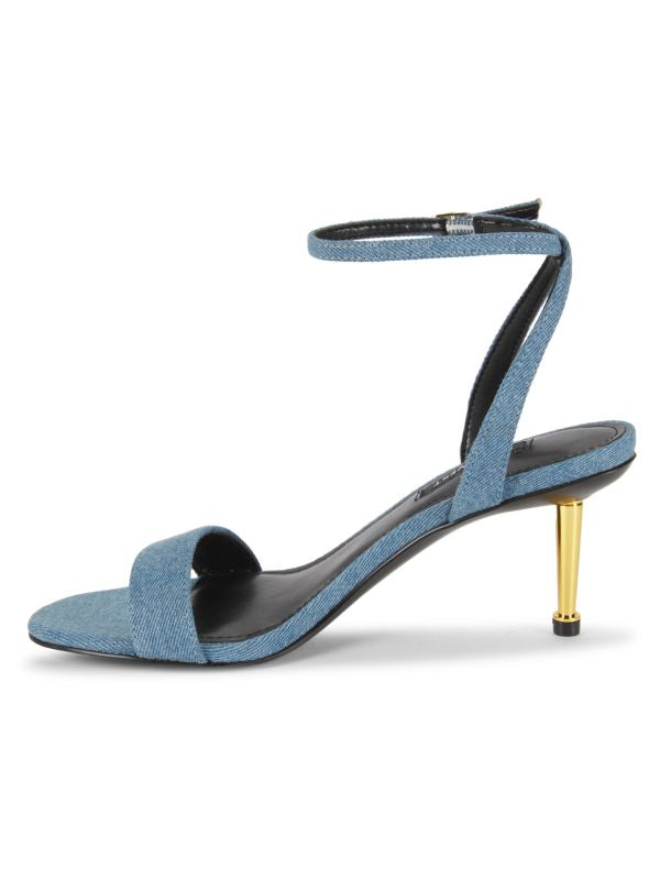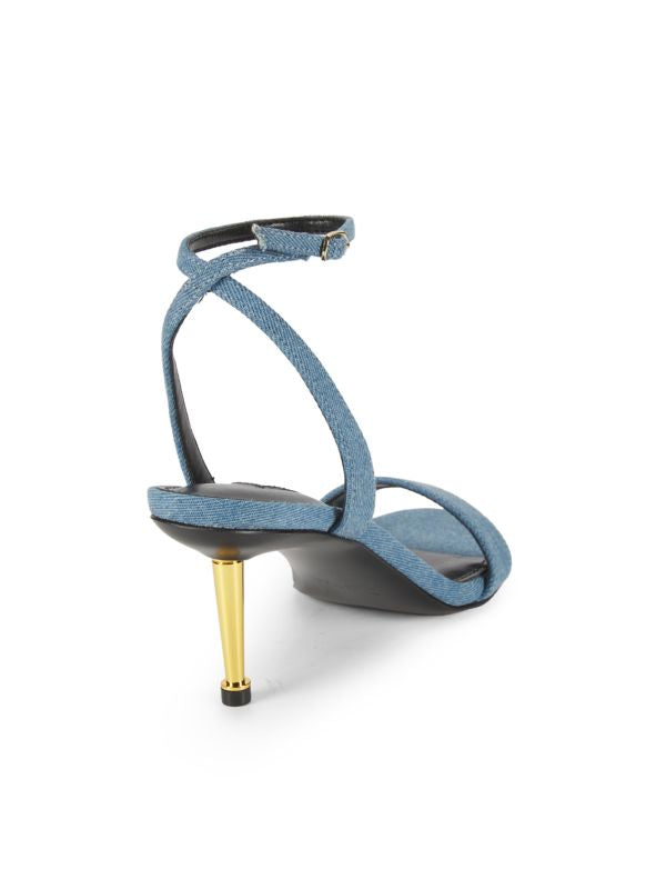 A forever-flattering dress sandal in denim-blue with a streamlined strap profile and poised heel. Designed to complement evening looks while staying comfortable through the night.