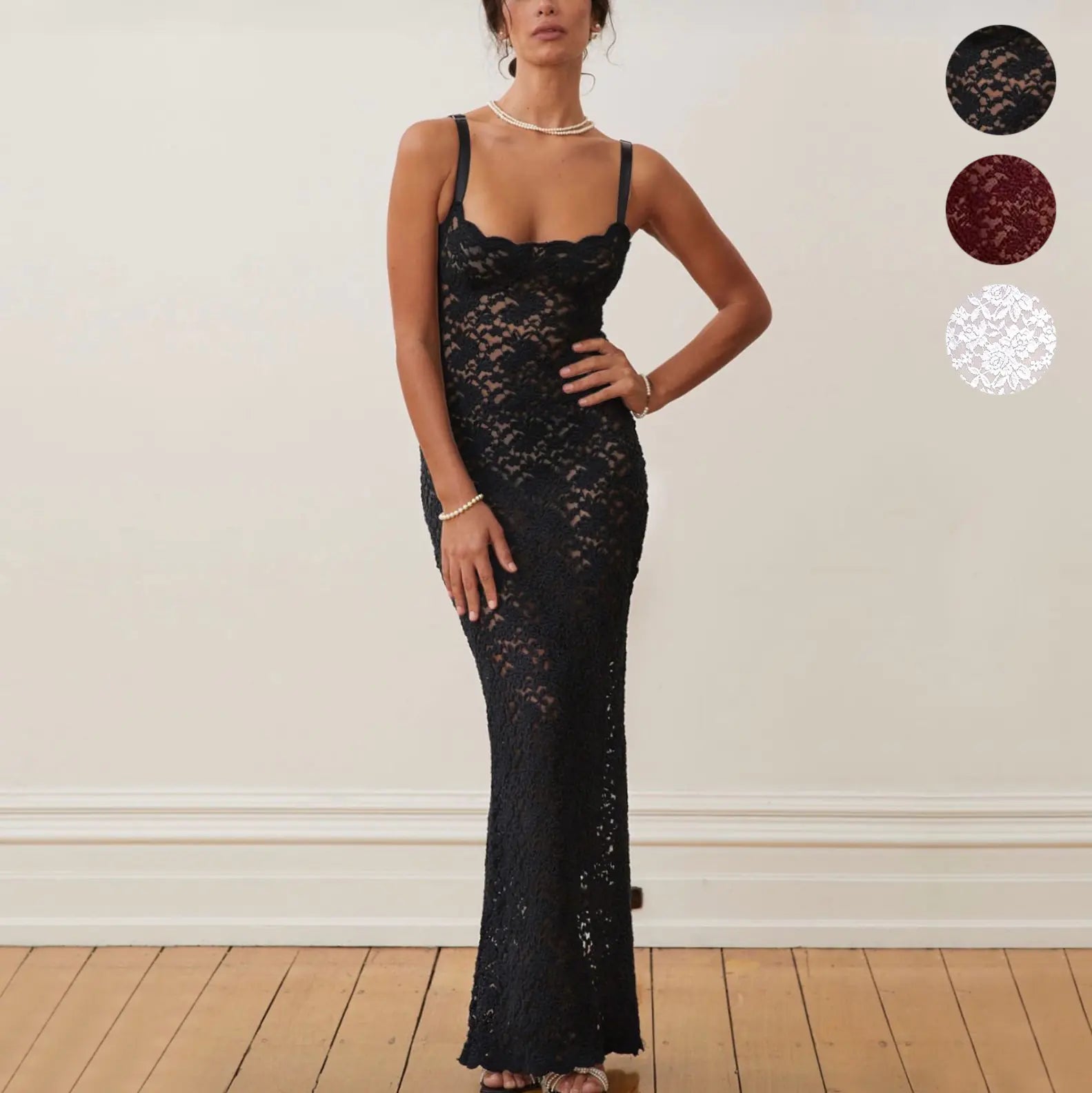 Make an unforgettable entrance in this off-shoulder lace maxi. Designed to flatter, it hugs your curves with delicate floral lace while the long flowing skirt adds grace and elegance. Available in black, white, and burgundy, this versatile piece transitions from cocktail parties to weddings effortlessly. High-quality lace ensures structure and lasting luxury.