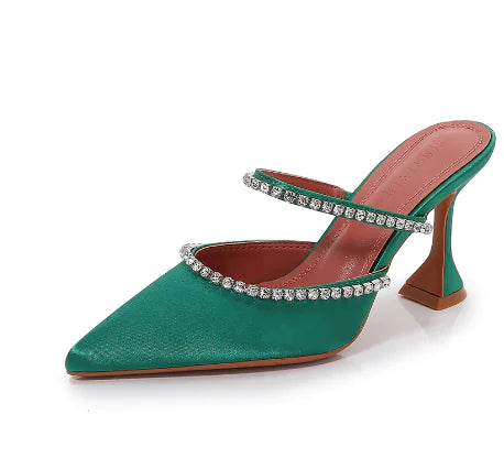 Elegance in motion: pointed satin uppers sparkle with rhinestones, lined in soft microfiber for comfort and set on a rubber sole for dependable grip. The sleeve-style entry fits snugly yet slips on with ease. Available in black, white or light blue for statement shine.