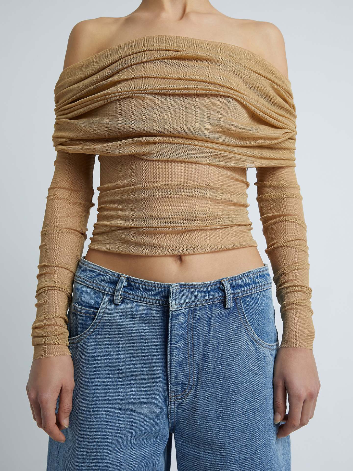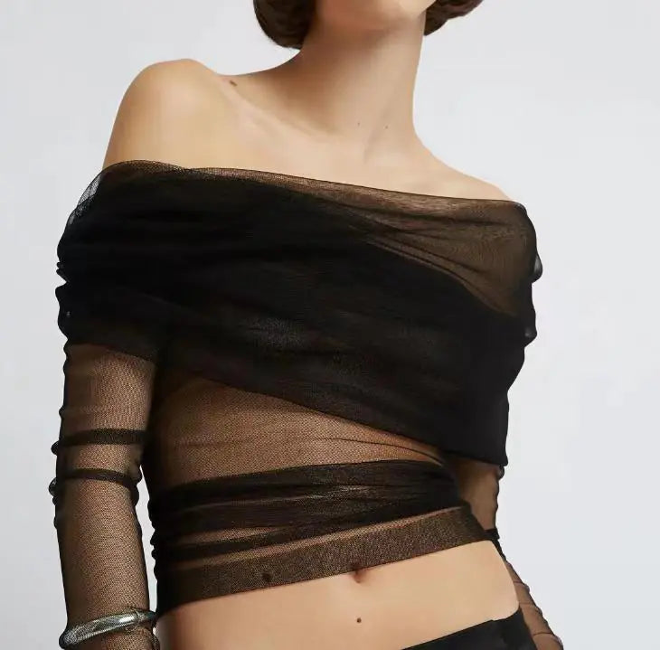 Sheer Off-Shoulder Mesh Long-Sleeve Top