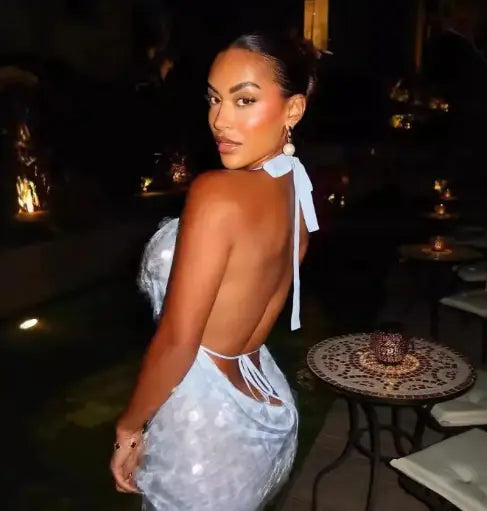 A stunning fusion of elegance and sophistication, this slim-fit beaded dress hugs your curves with a flattering silhouette. Adorned with intricate beadwork throughout, it adds shimmering glamour to every occasion. Crafted from polyester with spandex for comfort. Its perfect for formal evenings, weddings, and cocktail events.