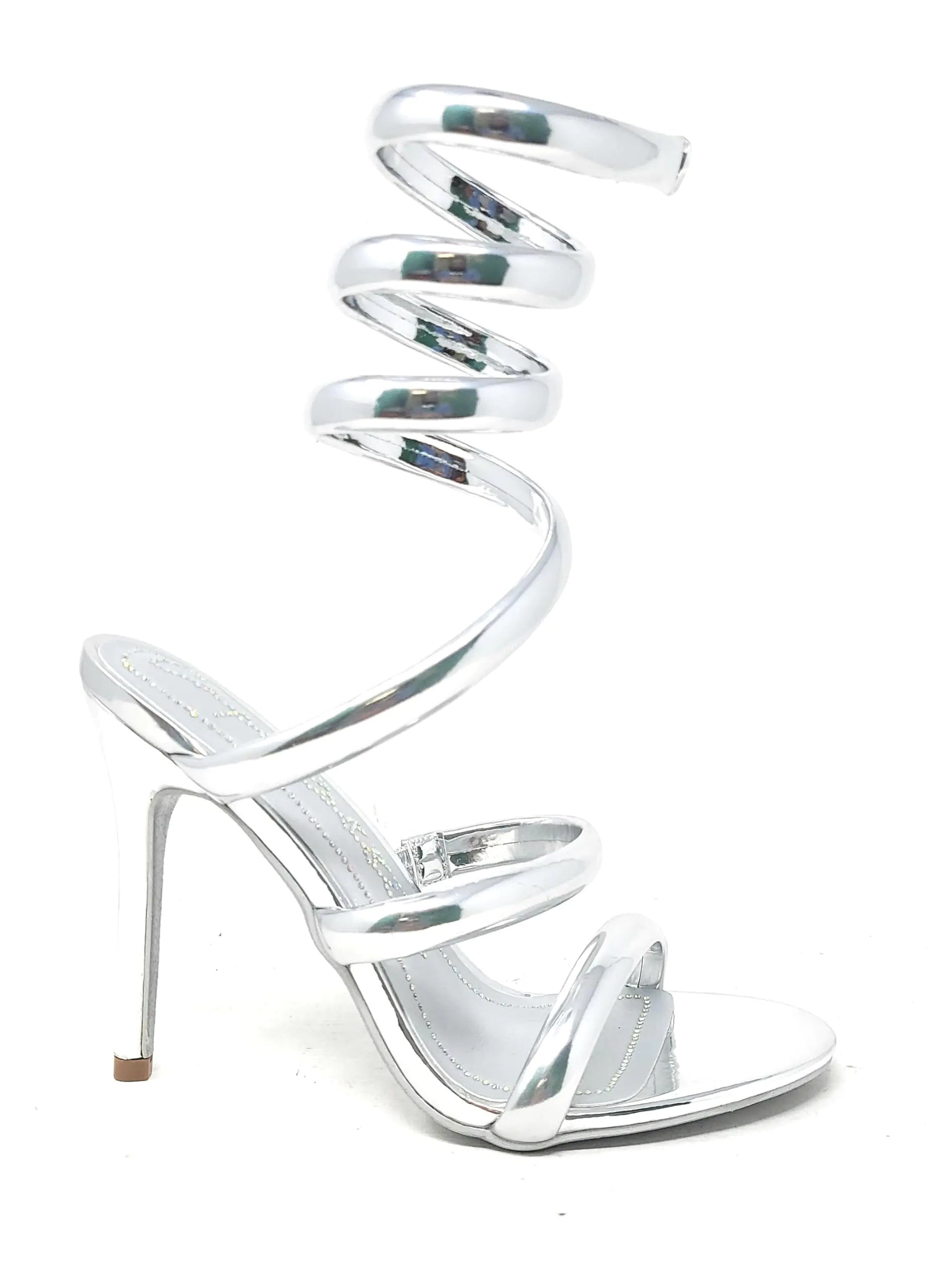 Spiral Wrap-Up Open-Toe Stiletto Heels