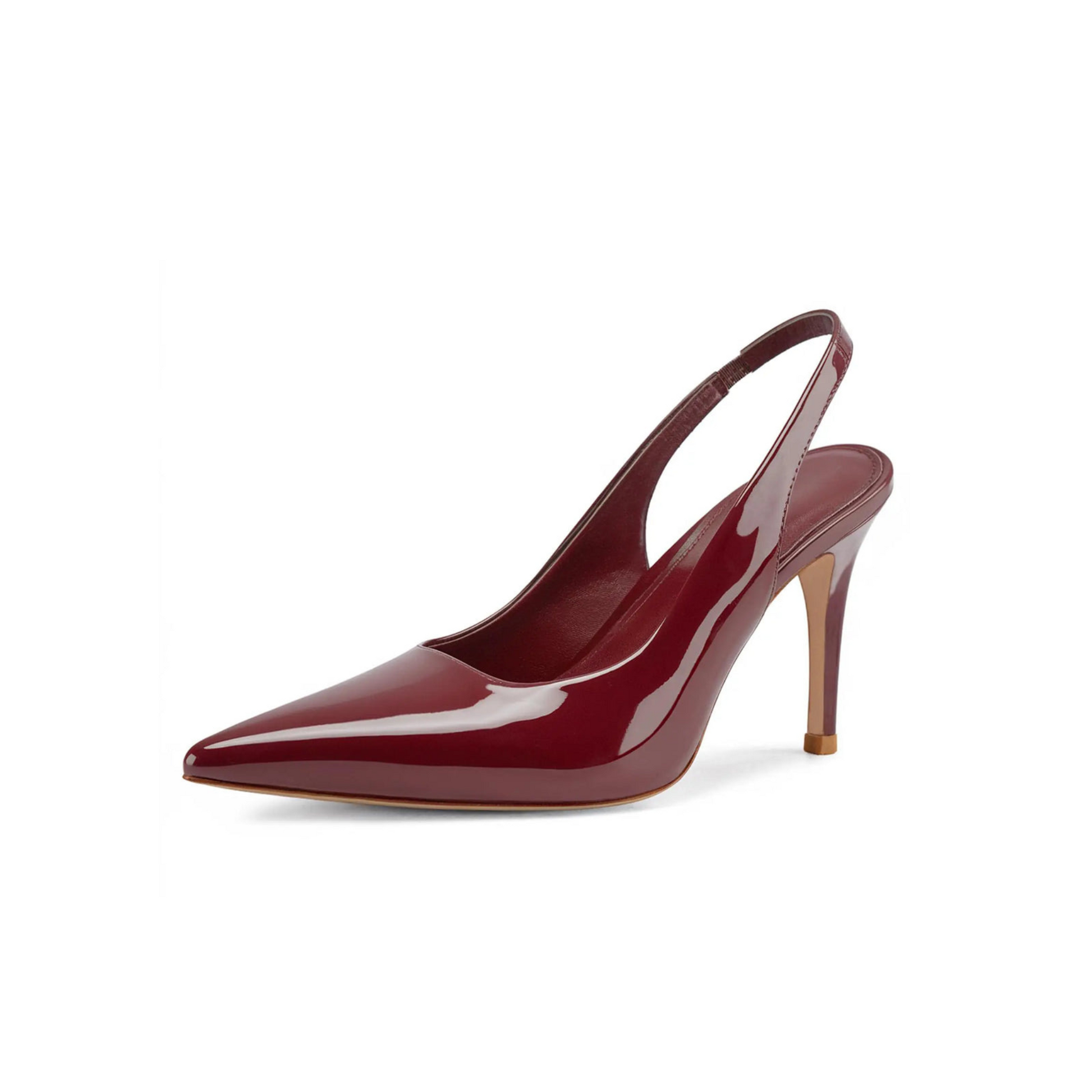 Make a bold statement in these wine red slingback stilettos. With a pointed closed toe, 2.95-inch heel, and secure elastic strap, they elongate the legs while staying comfortable. Designed with a padded insole and slip-resistant sole, they balance elegance and wearability. Perfect for weddings, parties, or professional wear, these heels pair effortlessly with dresses or denim.